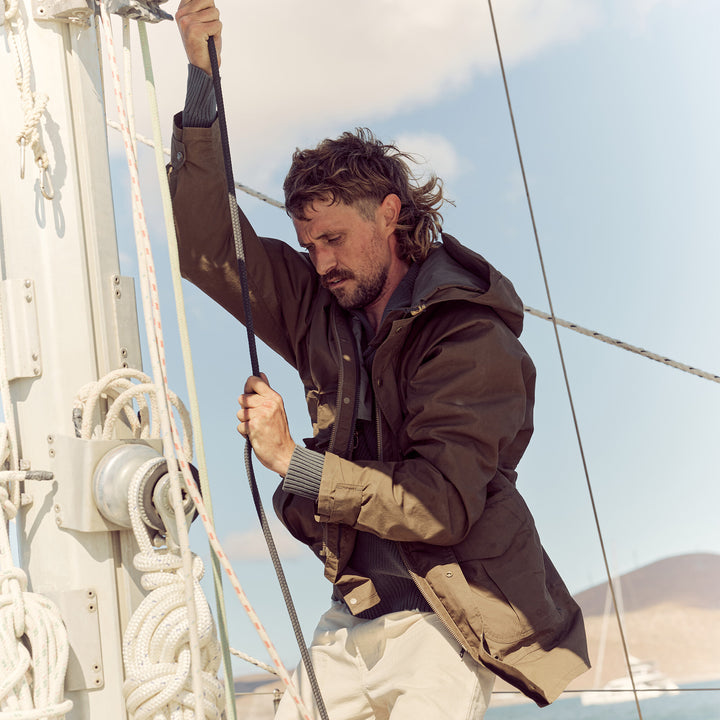 Seit Jahrhunderten ist die Wolljacke das Mittel der Wahl, um sich bei kaltem, nassem Wetter zu schützen. Dank ihrer komplexen Faserstruktur kann Wolle bis zu 30 % ihres Eigengewichts an Wasser aufnehmen, ohne sich feucht oder klamm anzufühlen, und transportiert die Feuchtigkeit aktiv nach außen, wo sie verdunstet. Wenn sie nass wird, behält sie ihre Struktur, ohne zu verfilzen, behält ihren Loft und speichert weiterhin die Körperwärme.