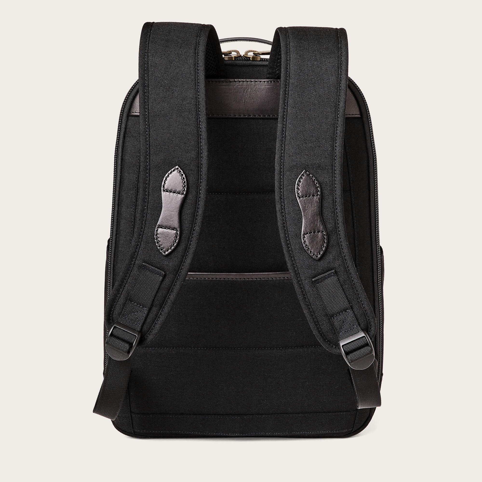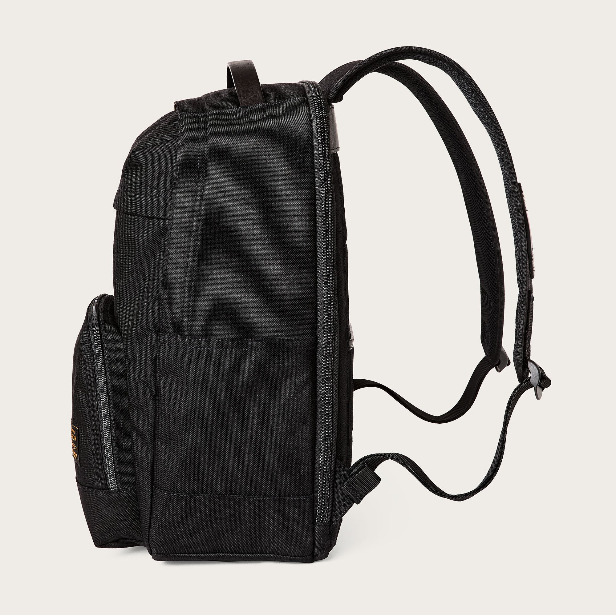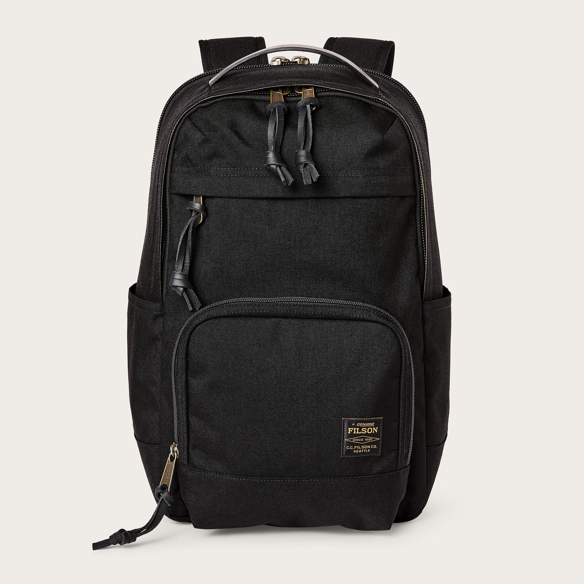 Made to withstand the abuse of travel and daily use, the versatile Filson Dryden Backpack is constructed from weather-resistant 1000D nylon for its ability to withstand long-term abrasion. With the same weave pattern as ballistic nylon, its resistance to tears and punctures is outstanding. Features a double-layer reinforced bottom for added durability. The zippered rear panel provides access to a padded pocket for laptops up to 15". Shoulder straps are ergonomically contoured for carrying comfort. Heavy-duty coil zippers.