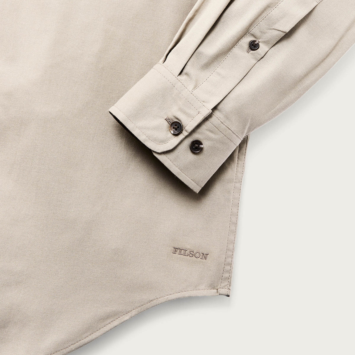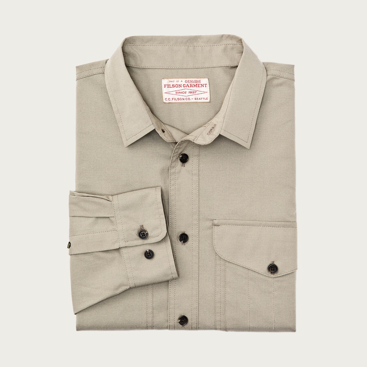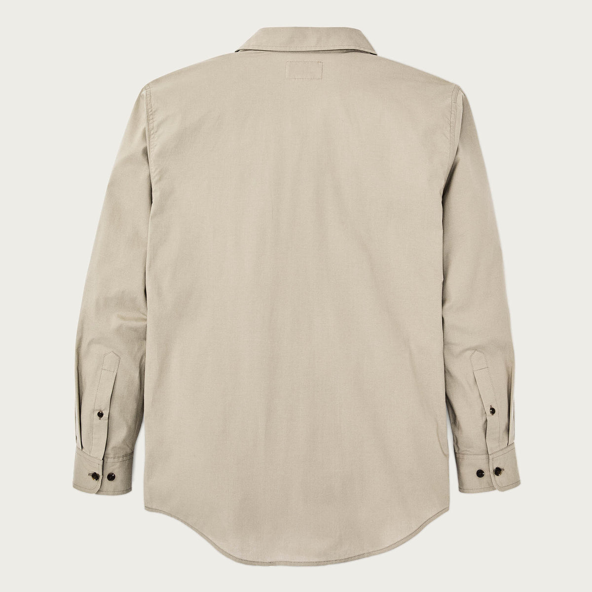 A favorite for warm-weather action, whether casting in high-desert streams, hiking into alpine lakes, or poling a skiff across the tide flats. The Twin Lakes material is woven with a bit of built-in stretch for complete freedom of motion. COOLMAX® in the cotton blend wicks moisture away from the body, dries quickly, and blocks harmful UV rays. Chest pockets are covered with buttoning flaps for security, and the left side features a slotted tool patch to keep accessories handy. Embroidered eyelets under the arms aid ventilation and in the pocket bottoms aid drainage. Button-front closure and spread collar. Button-adjustable cuffs.