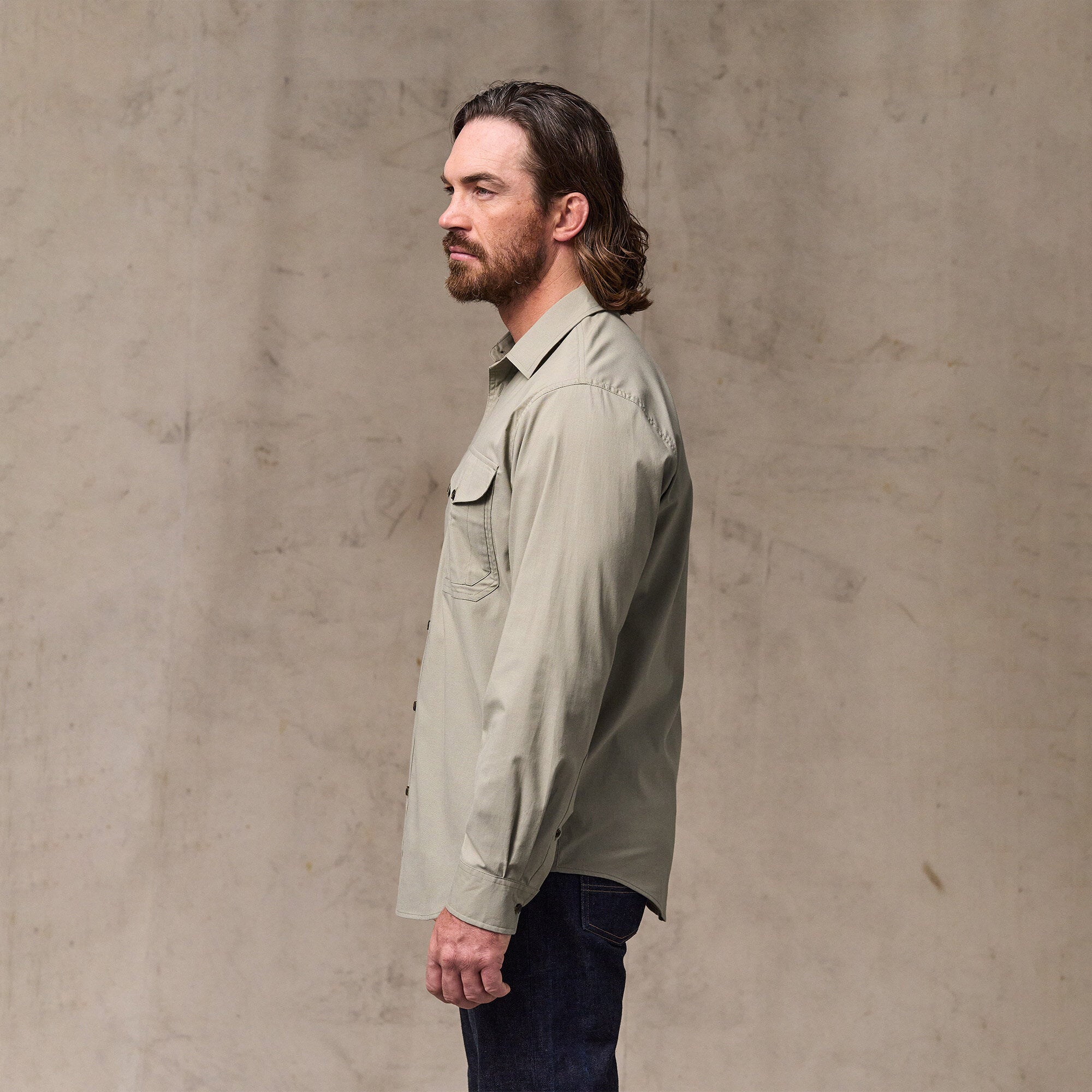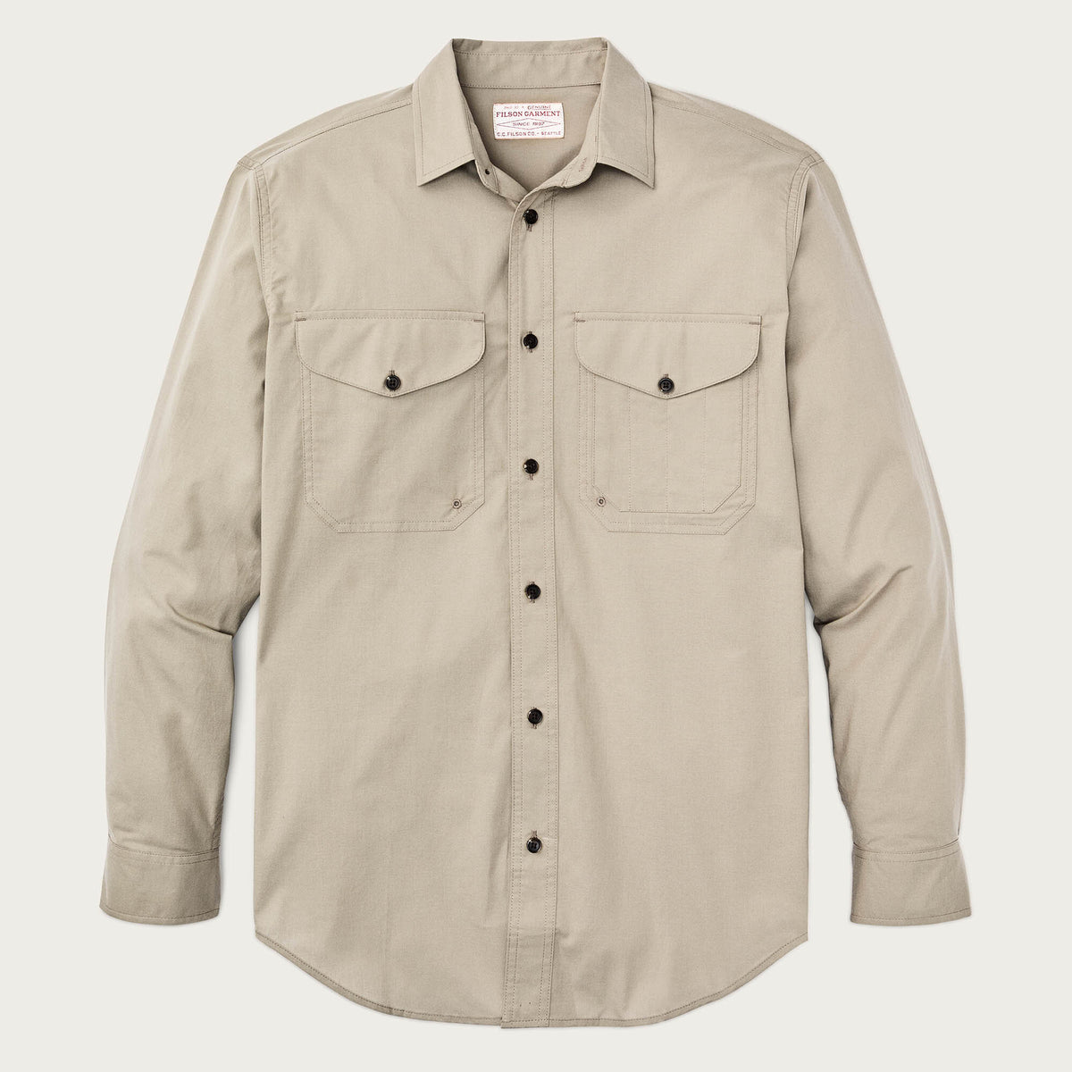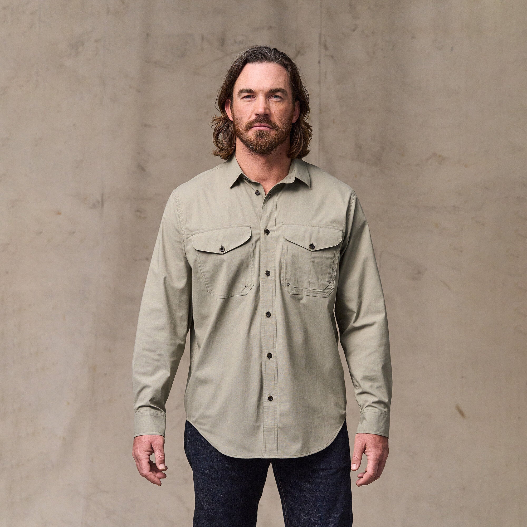 A favorite for warm-weather action, whether casting in high-desert streams, hiking into alpine lakes, or poling a skiff across the tide flats. The Twin Lakes material is woven with a bit of built-in stretch for complete freedom of motion. COOLMAX® in the cotton blend wicks moisture away from the body, dries quickly, and blocks harmful UV rays. Chest pockets are covered with buttoning flaps for security, and the left side features a slotted tool patch to keep accessories handy. Embroidered eyelets under the arms aid ventilation and in the pocket bottoms aid drainage. Button-front closure and spread collar. Button-adjustable cuffs.