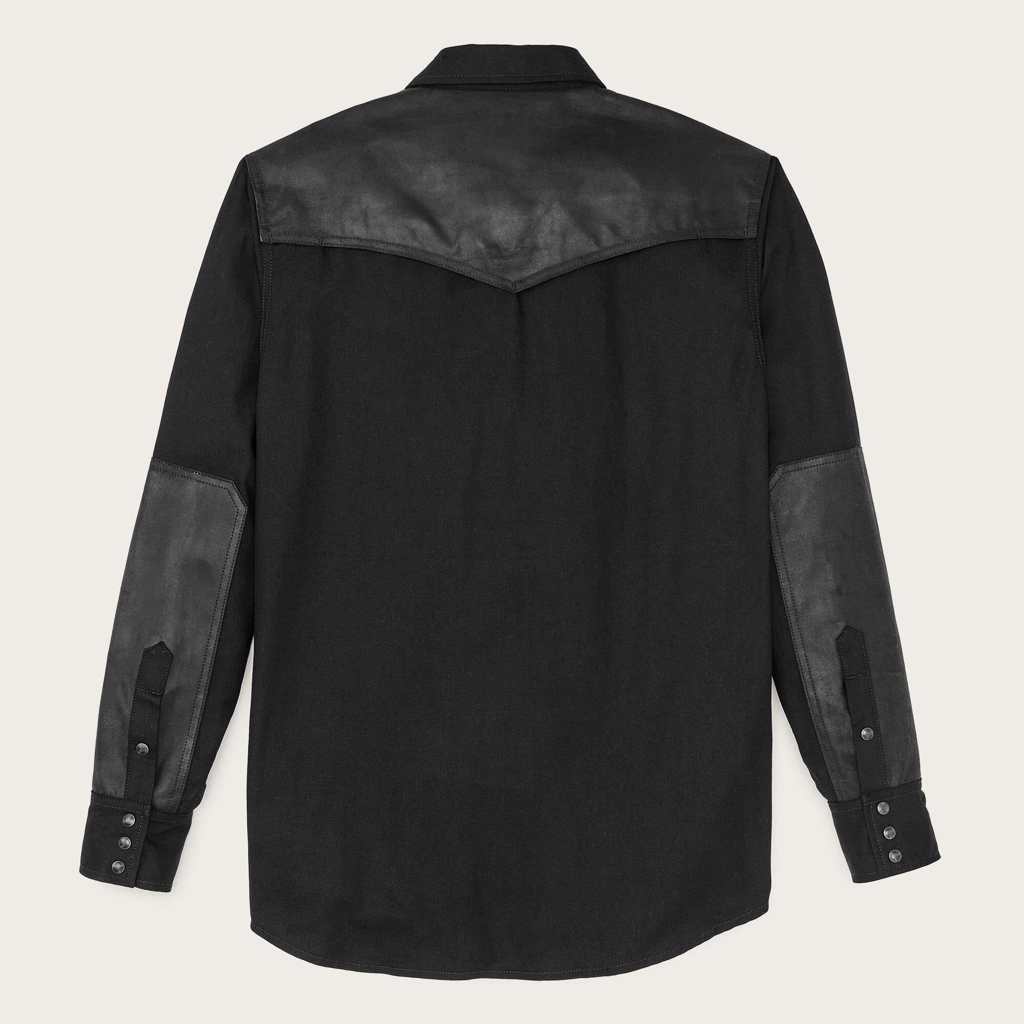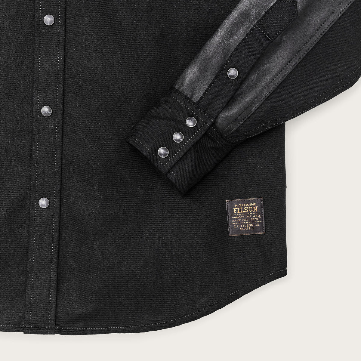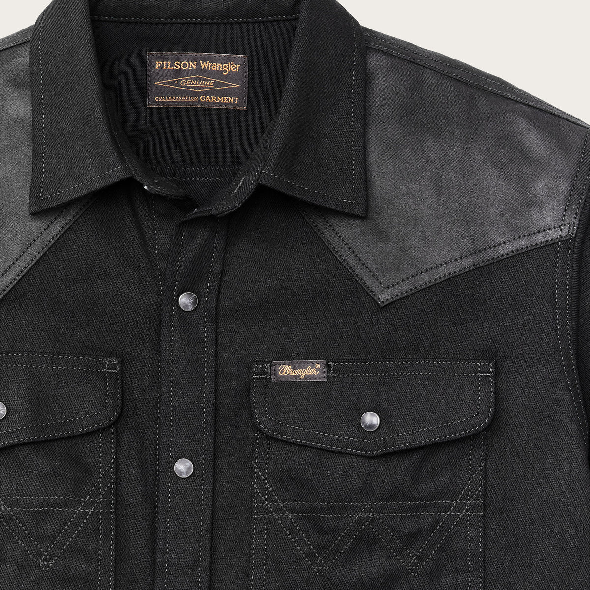 A durable special-edition shirt made from 7.3-oz. denim with a right-hand twist. Denim’s legendary dependability and comfort on ranches, jobsites, and Naval ships has made it a favorite fabric for work and daily wear. The shoulders are made from a washable waxed canvas that adds durability and a bit of water resistance if caught in a shower without a jacket. The back yoke is vented for breathability, and the front is pointed for Western flair. Antiqued bronze snaps secure the front, pocket flaps and cuffs. Forearms are reinforced with the same washable waxed canvas as the yoke. Wrangler’s signature ‘W’ is embroidered on the front pockets.