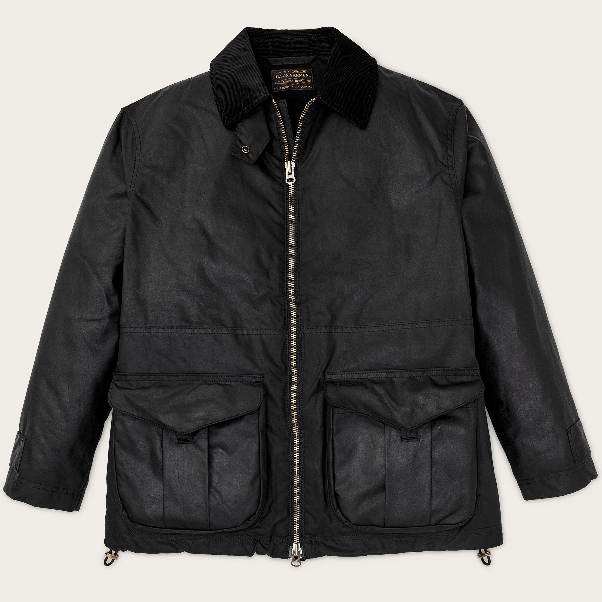 Do not wash or dry clean – brush or wipe clean with a damp rag. Rewax as needed to maintain maximum water resistance. To prevent the transfer of oils, we recommend avoiding prolonged contact between Filson oil finish goods and light-colored fabrics, especially in warm weather.
