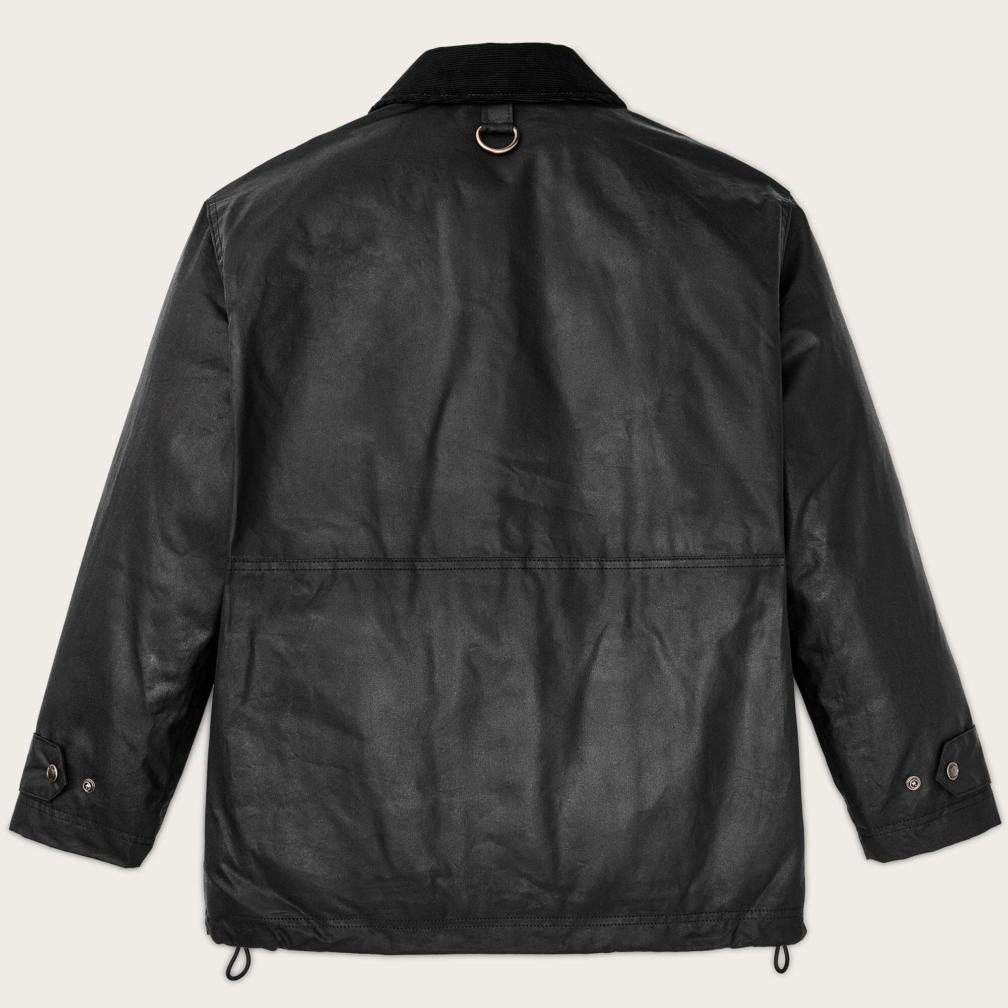 Made with our signature Cover Cloth waxed cotton, this raincoat is based on a favorite in our archive The torso is lined with lightweight canvas and the sleeves with easy-layering polyester. Large expandable cargo pockets have plenty of room for essentials and are protected by snapped flaps. The collar is lined with cotton corduroy for comfort against the skin and can be secured with the snapped throat latch. Two-way front zipper. Snap-tab adjustable cuffs.