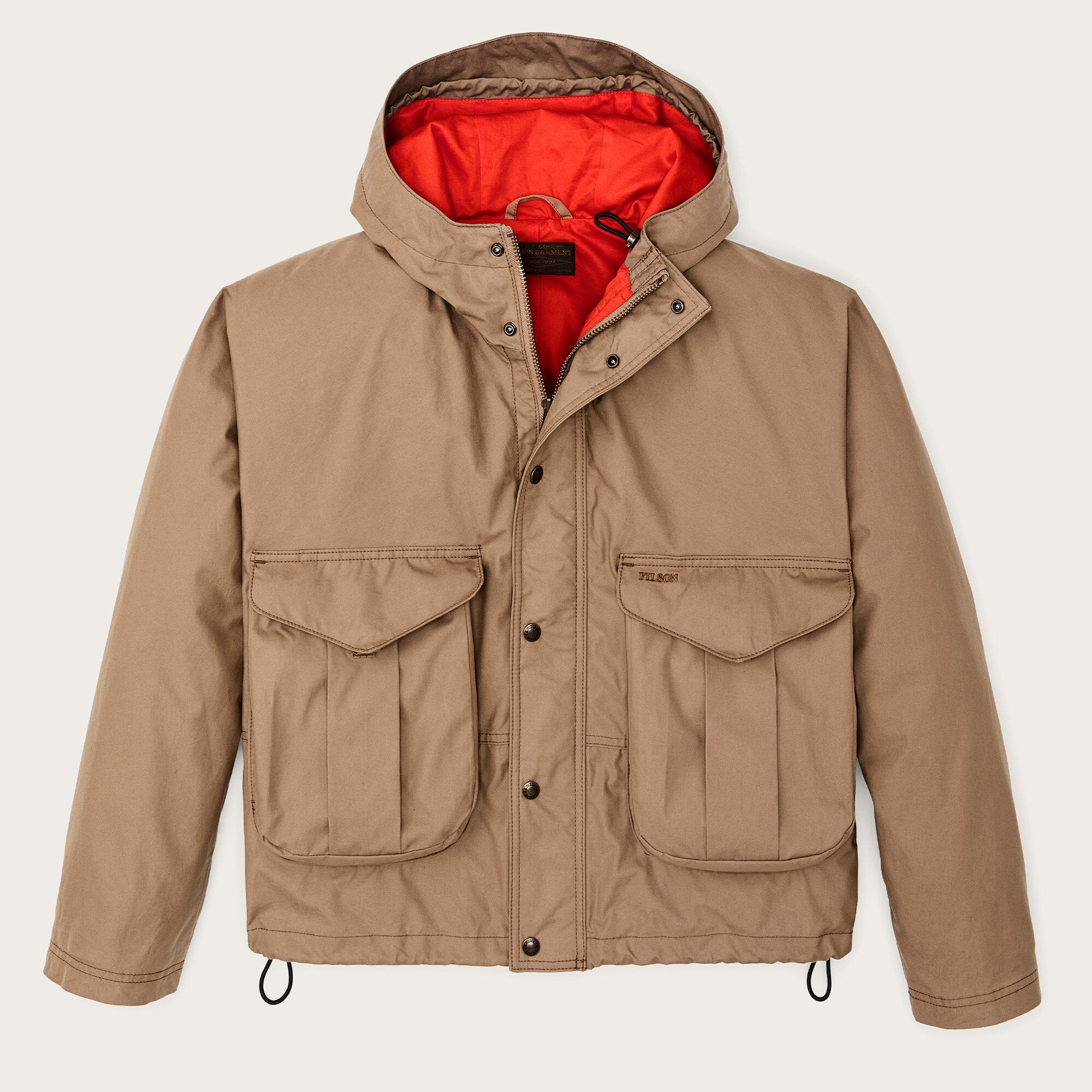 Inspirée d’un de nos modèles des années 1990, cette veste légère est caractérisée par une coupe courte à la taille. Elle est fabriquée avec une cape sans couture au niveau des épaules pour minimiser les coutures exposées aux intempéries. Le tissu Aviator provient de la célèbre entreprise anglaise British Millerain, experte en vêtements de pluie depuis 1880. Le coton tissé serré est traité avec une finition imperméable très efficace en cas de temps humide. Les poches cargo extensibles sont surdimensionnées, comme dans le modèle original, pour accueillir de grandes boîtes à mouches. Elles sont protégées par des boutons-pression utilisables d’une seule main et présentent des poches cachées pour les mains derrière. La capuche et l’ourlet sont réglables par cordon pour un ajustement personnalisé. Poignets intérieurs en tricot côtelé pour protéger du vent.