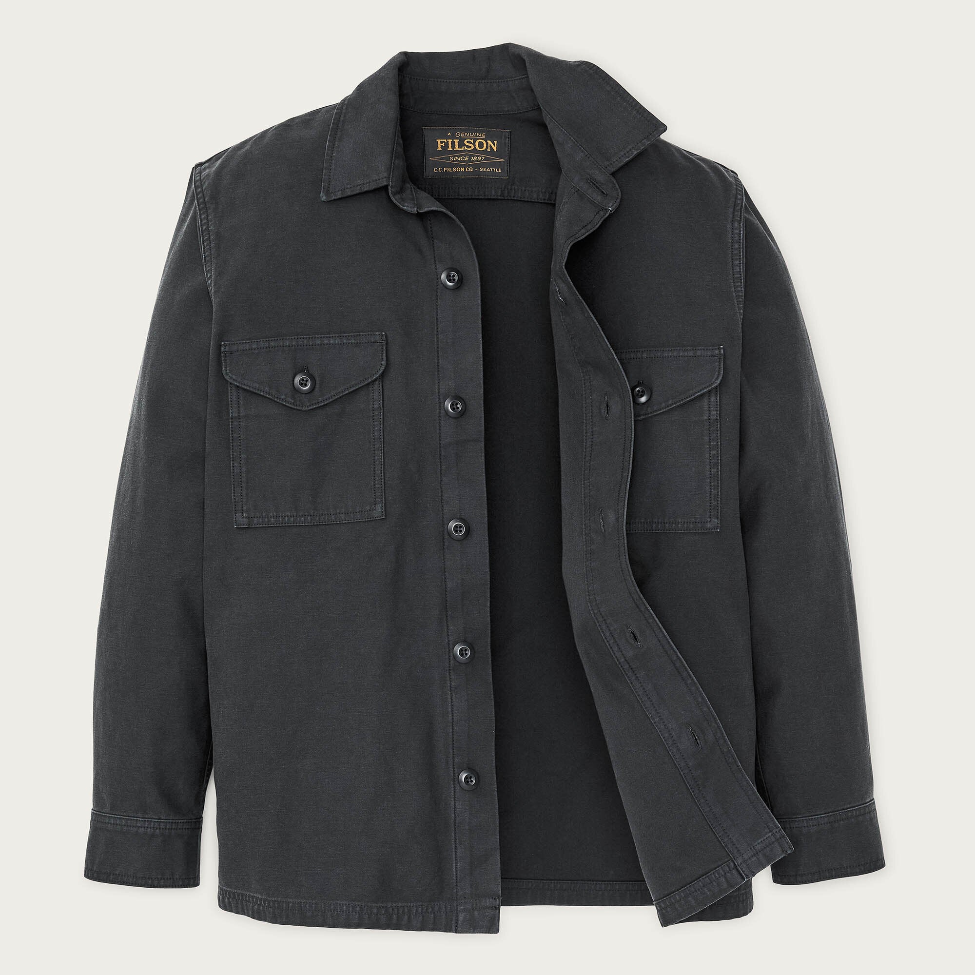Dieses vielseitige Overshirt bietet an kühlen Tagen im Gelände zusätzlichen Schutz. Das Jac-Shirt ist unserem kultigen Original nachempfunden, das sich seit den 1970er-Jahren großer Beliebtheit erfreut. Seine Vielseitigkeit macht es zu einem absoluten Lieblingsstück. Bei dem robusten, mittelschweren Material handelt es sich um Baumwollsatin mit glatter Innenseite, die das Überziehen vereinfacht. Robuste Knöpfe sichern den Verschluss auf der Vorderseite, die Taschenpatten auf der Brust und die verstellbaren Ärmelbündchen. Gerader Saum für das Tragen über der Hose. Haikragen.