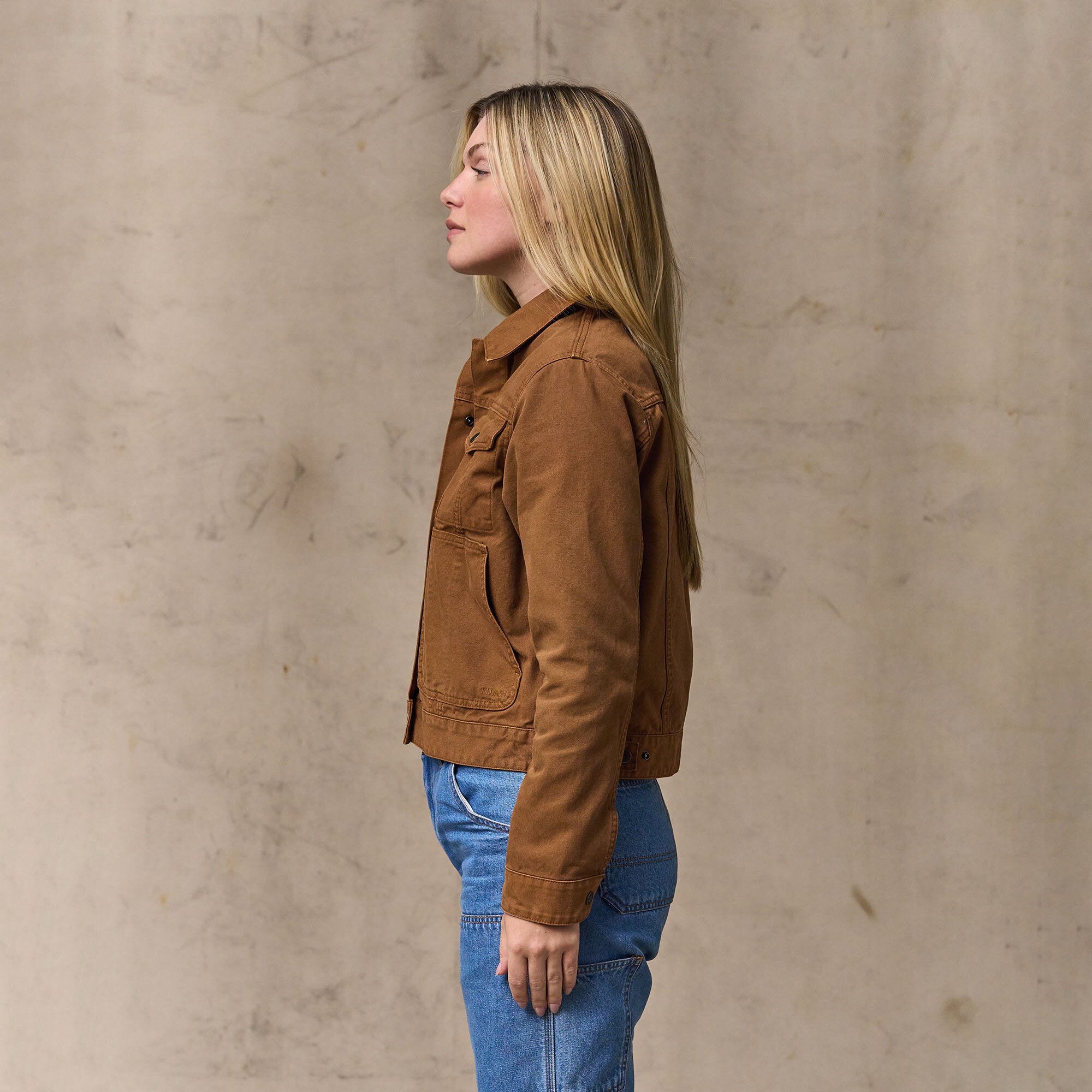 Die Canvas Short Cruiser für Damen ist unserem Bestseller Short Lined Cruiser nachempfunden und hat ihre Wurzeln in alten Trucker-Jacken, die den Standard für strapazierfähige, hüftlange Oberbekleidung setzten. Die Jacke ist aus robustem Baumwollcanvas mit Kappnähten und Riegelverstärkung gefertigt. Strapazierfähig genug für den täglichen Gebrauch und ungefüttert für vielseitiges Layering zu jeder Jahreszeit.